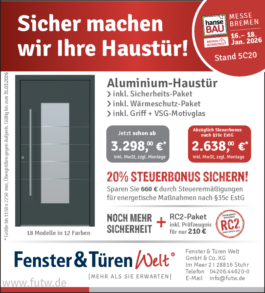 Optimale Wärmedämmung und Stabilität sowie hochwertige Sicherheitsausstattungen sind wichtige Aspekte beim Kauf Ihrer Haustür. Übrigens: Jede Haustür wird individuell für Sie auf Maß gefertigt.