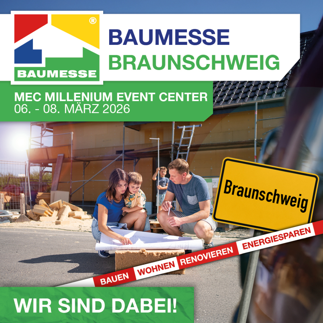 Was Sie konkret mit dem gezielten Einbau von Energiespar-Fenstern bewirken können, erfahren Sie von uns vom 6. bis zum 8. März 2026 auf der Baumesse Braunschweig im MEC Millenium Event Center am Stand 2.005 und bei unserem entsprechenden Fachvortrag am Samstag, den 7. März 2026 um 10.30 Uhr im MEC Vortragsraum im 1.OG.